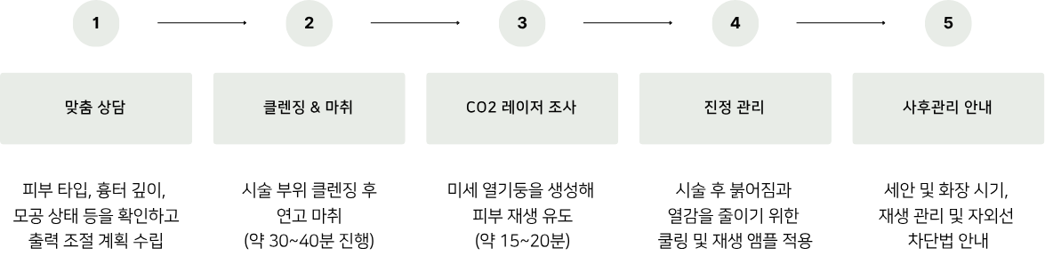 CO2 레이저는 이산화탄소(10,600nm) 파장을 이용해 피부 표면에 미세한 열자극을 주어