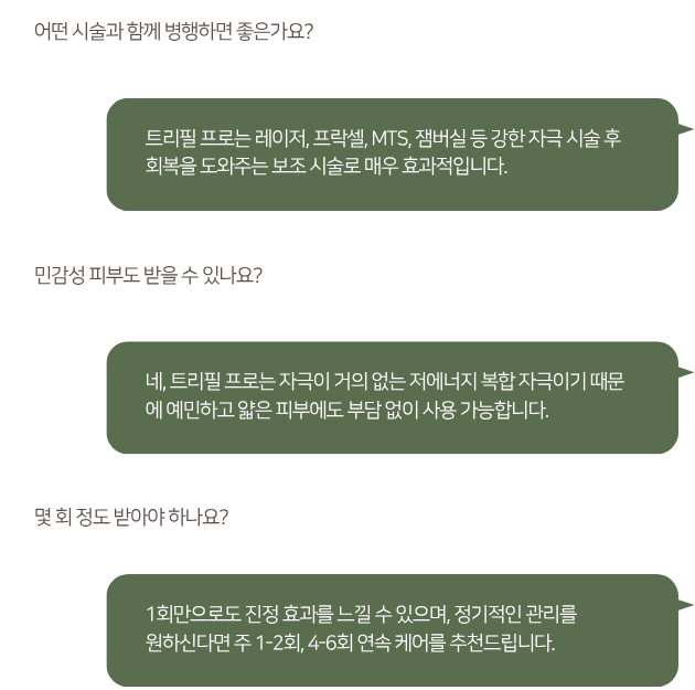 트리필 프로는 고주파(RF), 저출력 레이저(LLLT), 중저주파 미세전류를 한 번에 사용하는